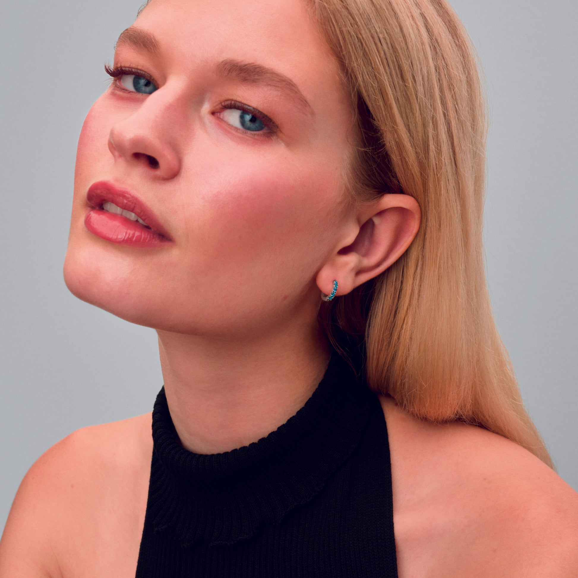 Sterling Silver Huggie Earrings With Aquamarine Blue Crystal