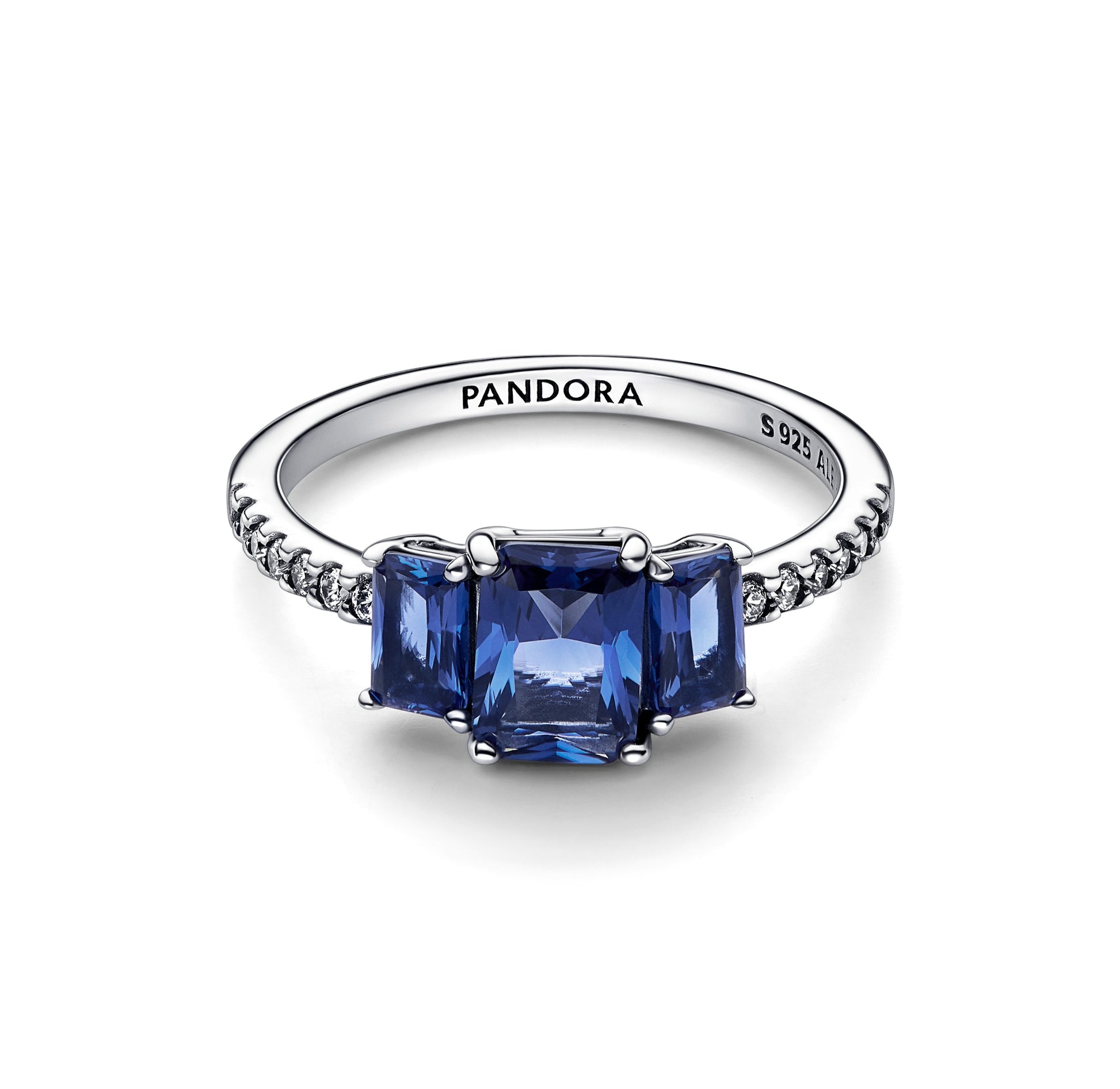 Sterling Silver Ring With Princess Blue Crystal And Clear Cubic Zirconia