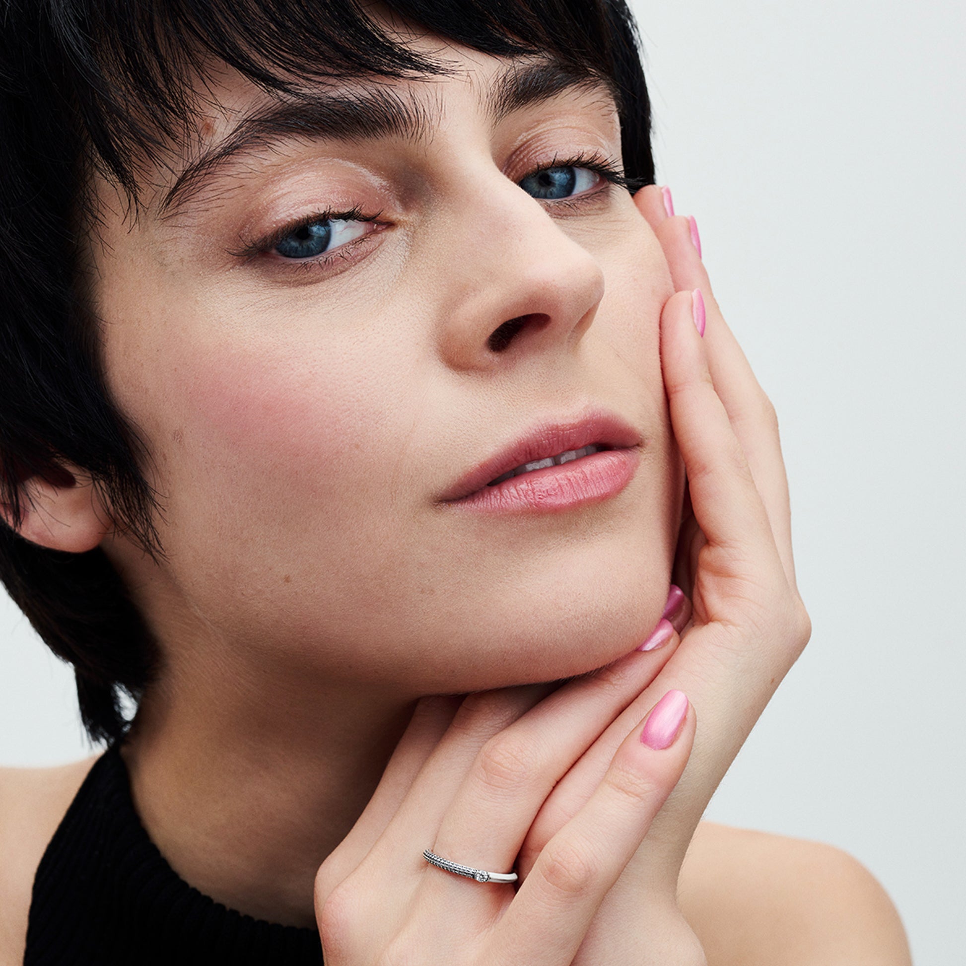Sterling Silver Ring With White Enamel And Clear Cubic Zirconia