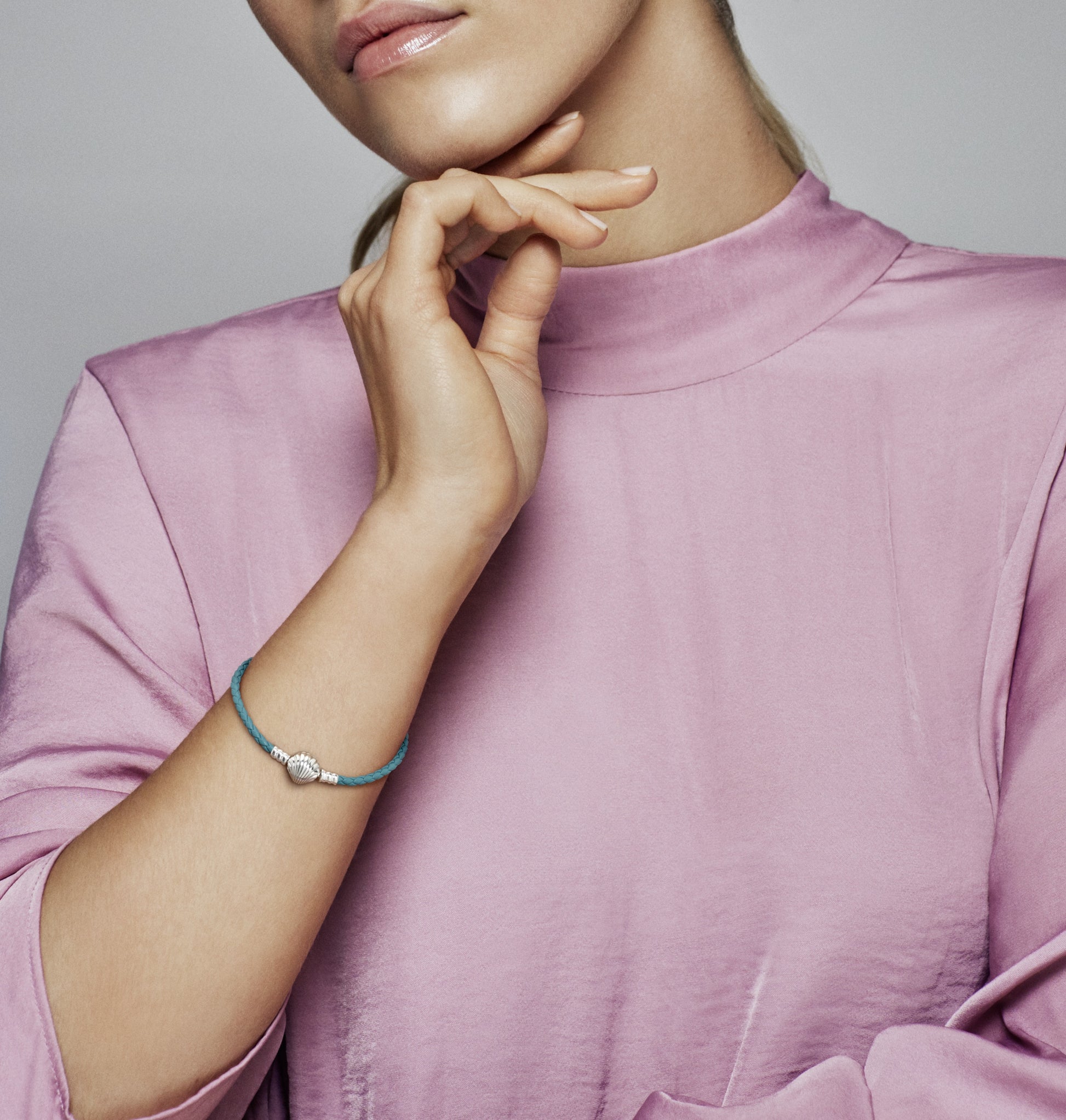 Sterling Silver Turquoise Braided Leather Bracelet And Shell Clasp