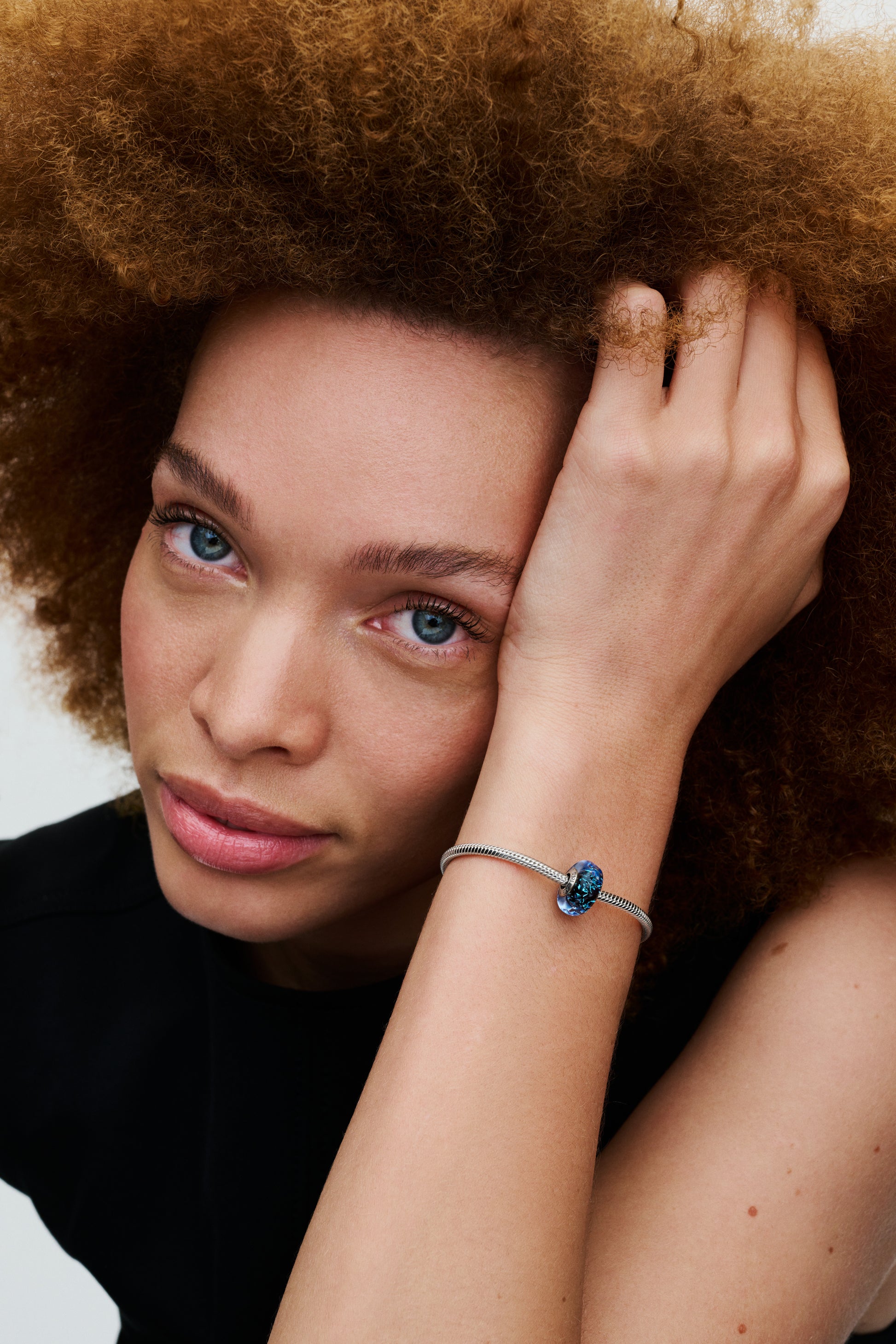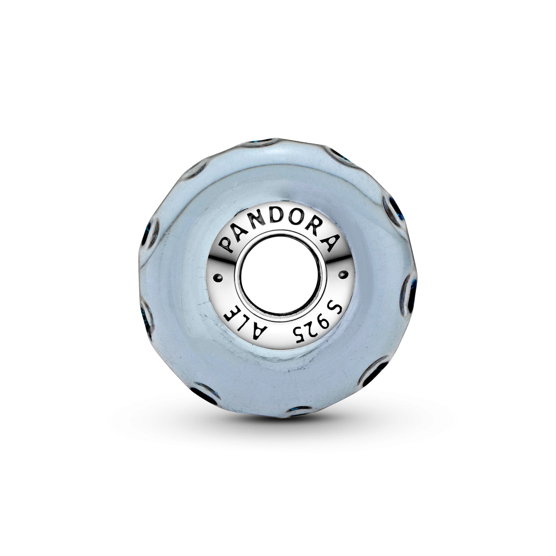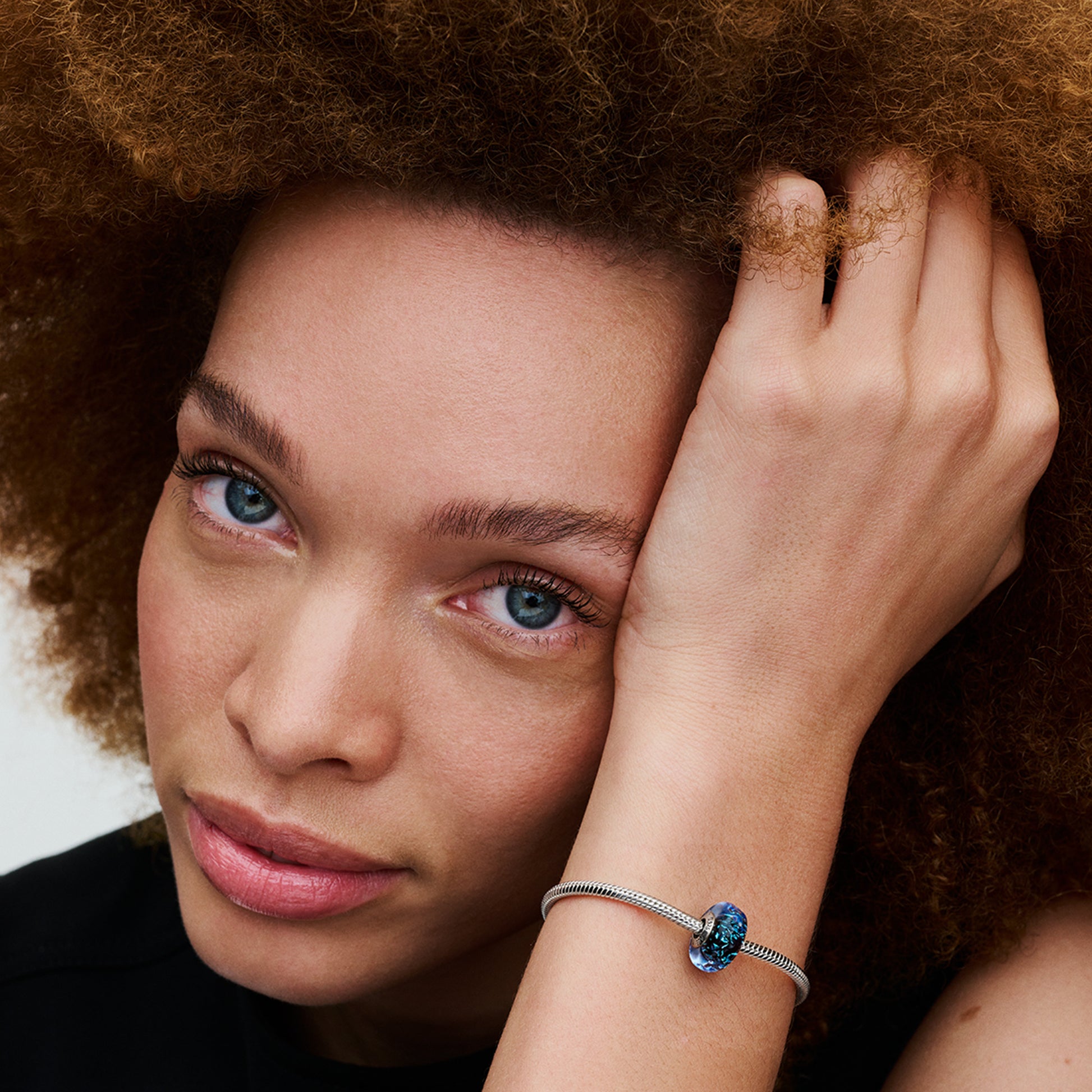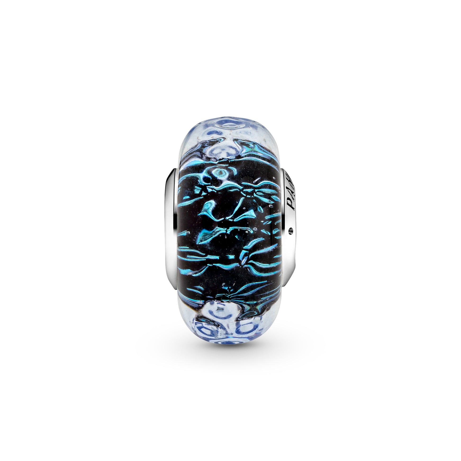 Wavy Sterling Silver Charm With Iridescent And Dark Blue Murano Glass