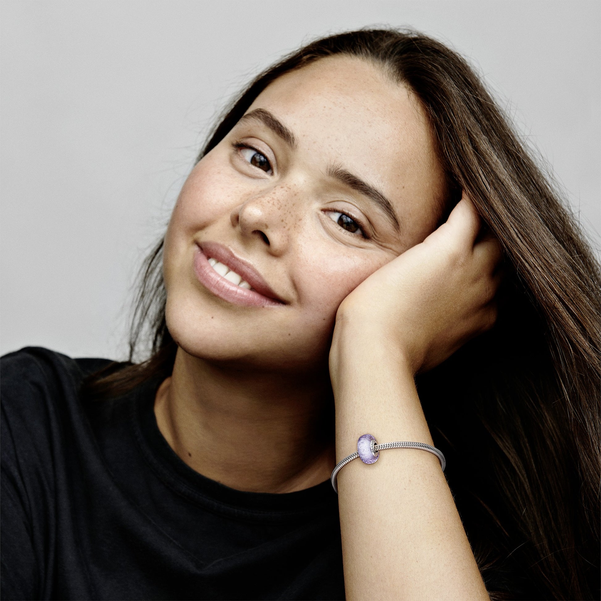 Wavy Sterling Silver Charm With Iridescent And Lavender Murano Glass
