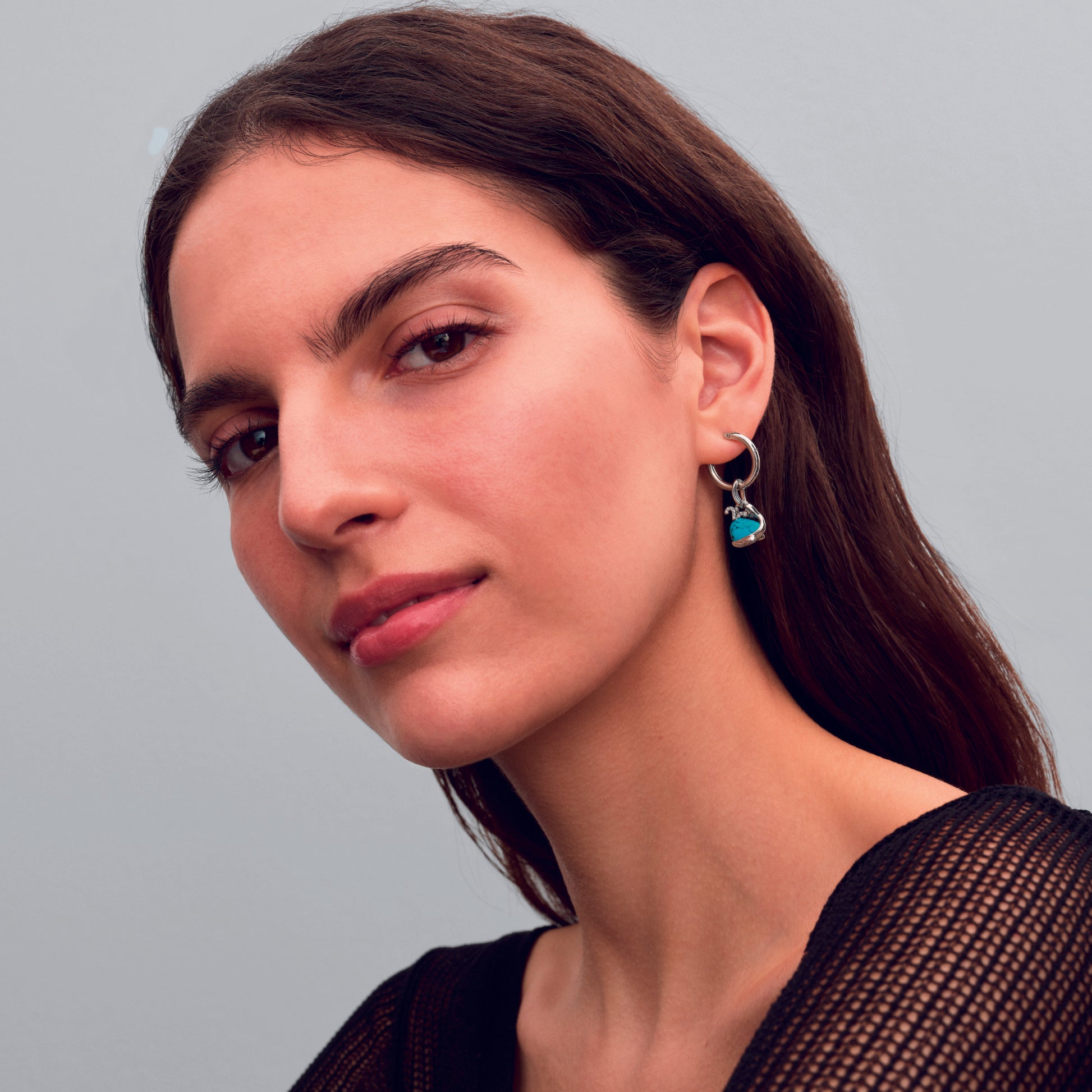 Whale Sterling Silver Dangle With Clear Cubic Zirconia, Imitation Turquoise And Black Enamel