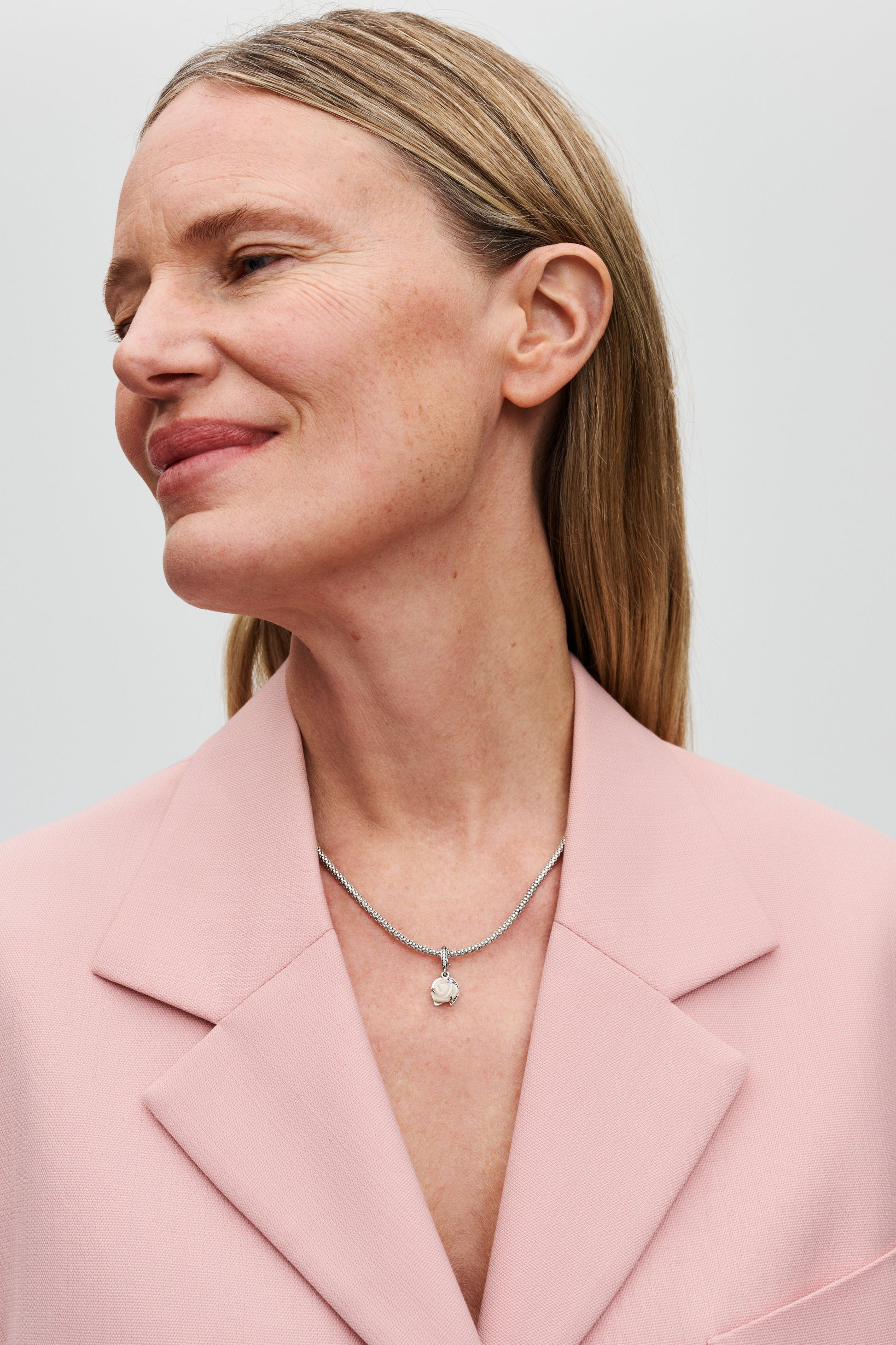 White Rose Sterling Silver Double Dangle With White Bioresin Man-Made Mother Of Pearl And Clear Cubic Zirconia