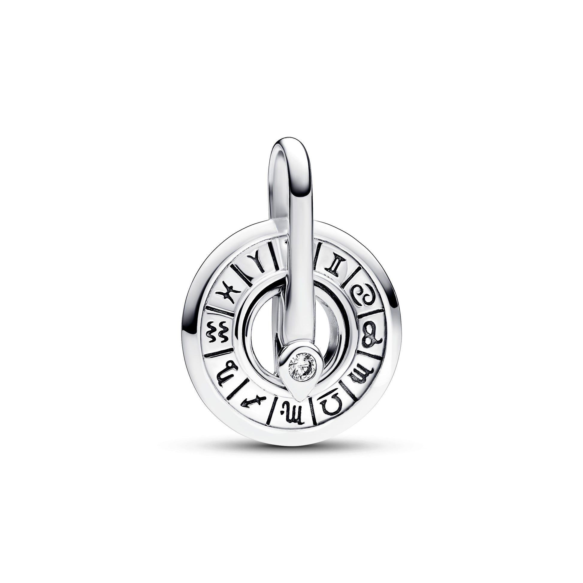 Zodiac Wheel Sterling Silver Medallion With Clear Cubic Zirconia